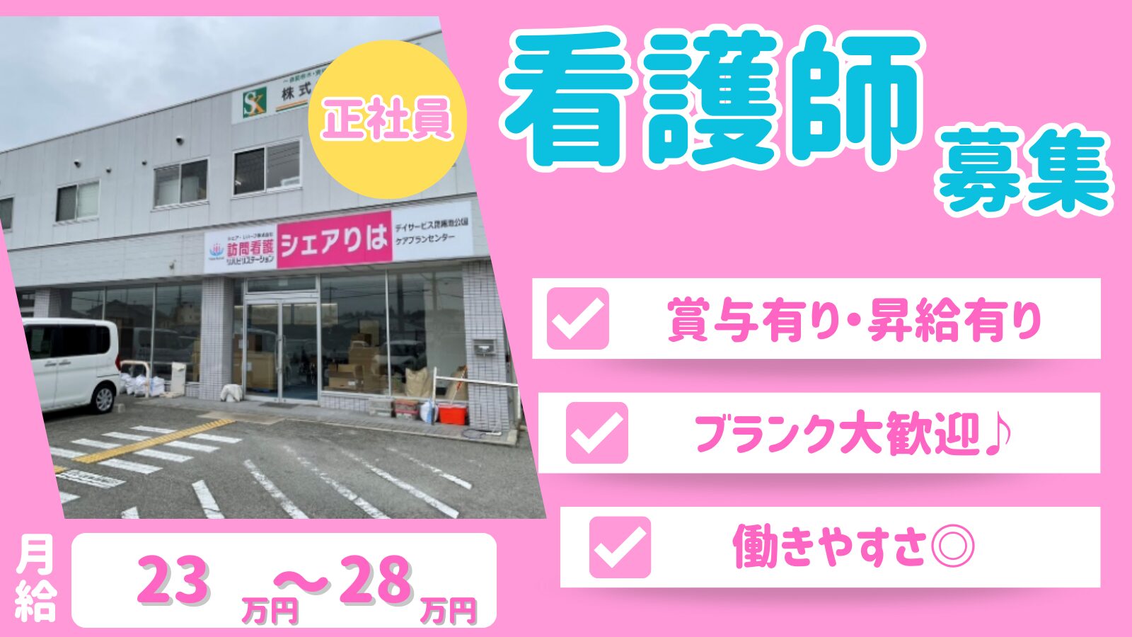 【専門性の高い医療行為なし】未経験OK◎オンコールほぼなし☆残業ほぼなし♪週休2日性学研都市線「住道駅」すぐ近くの訪問看護ステーションで働きませんか?職種 訪問看護師(正社員) 給与 【訪問看護師(正社員)】